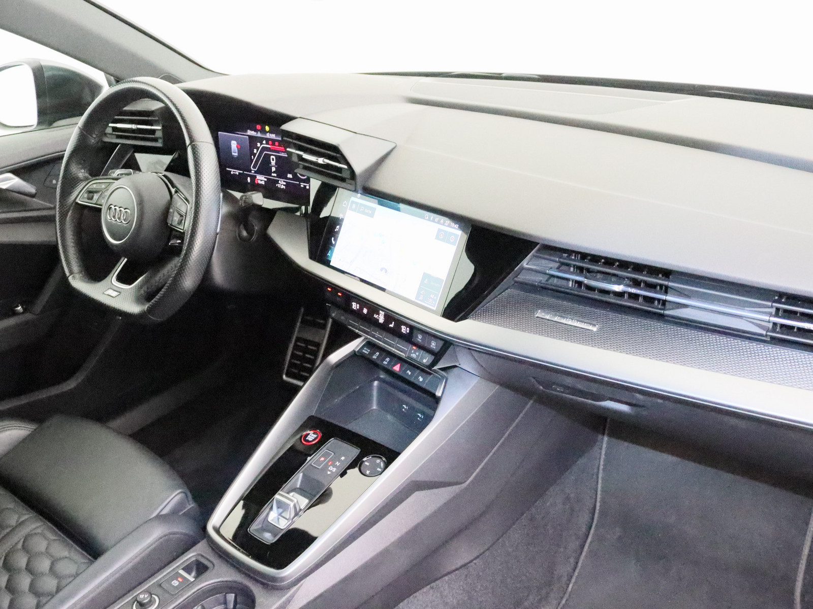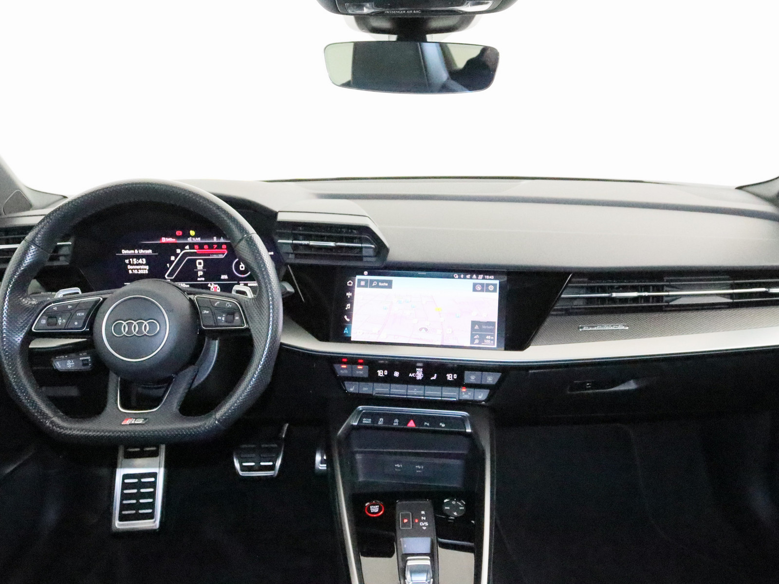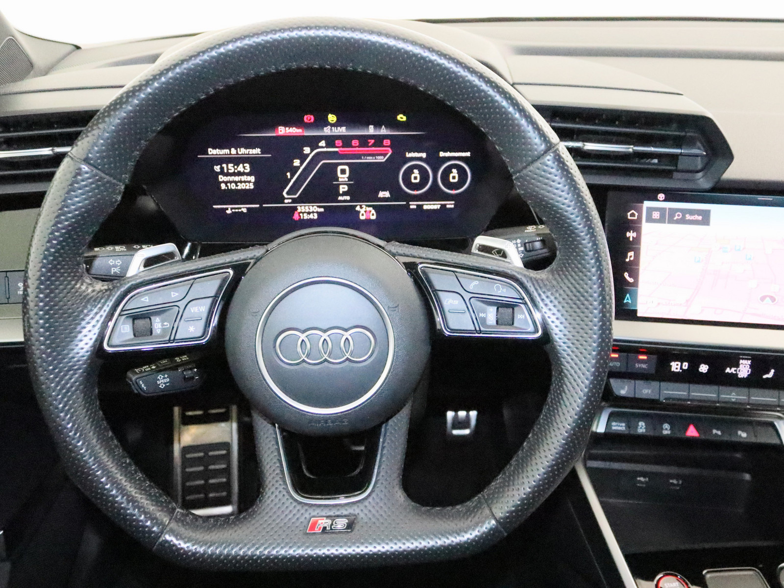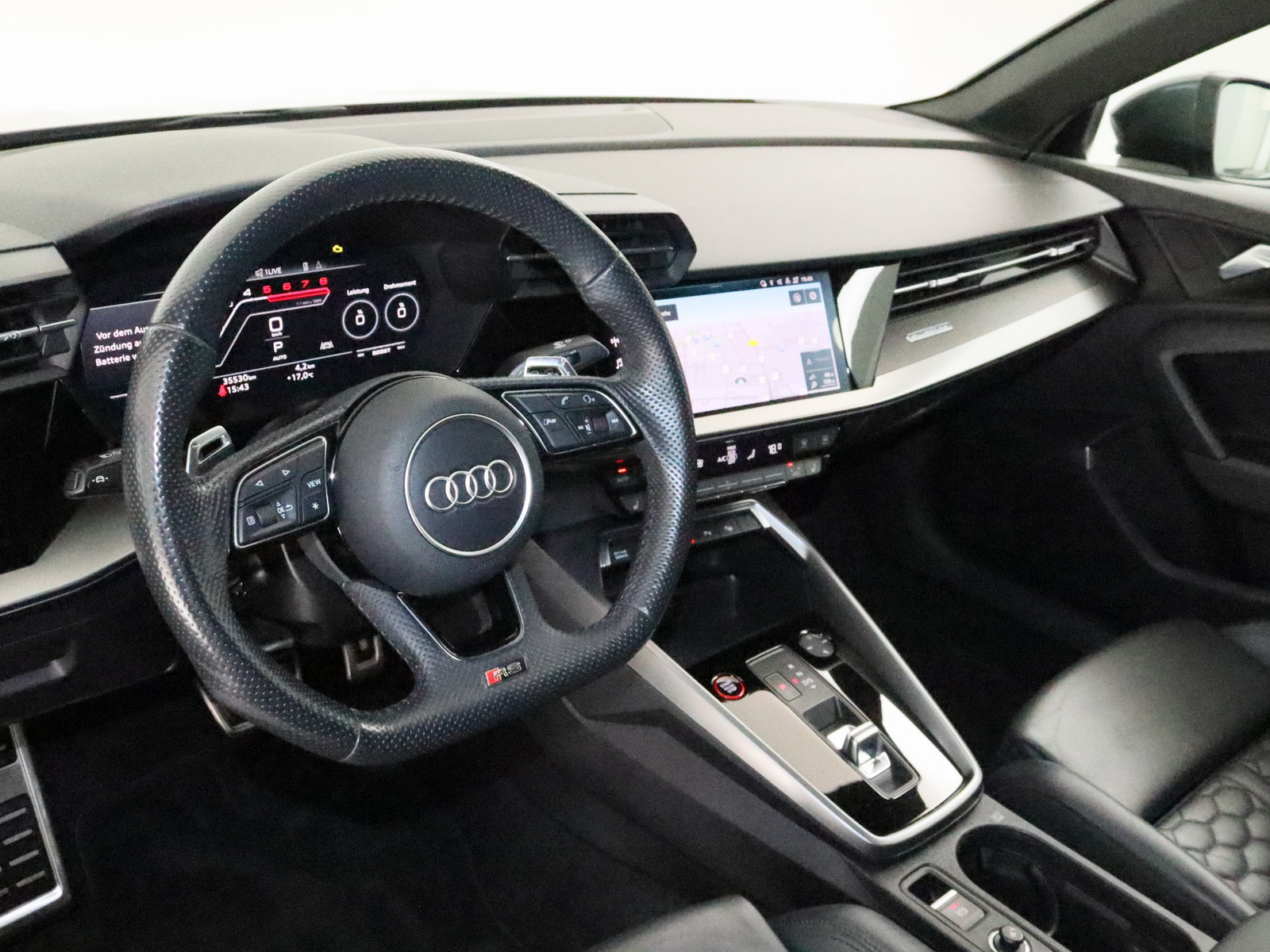 Fahrassistenz-System: Spurverlassenswarnung Reifen-Reparaturkit Lenkrad (Sport/Leder - 3-Speichen, unten abgeflacht) mit Multifunktion plus und Schaltfunktion Progressivlenkung Elektron. Stabilitätskontrolle (ESC) Elektron. Stabilitäts-Programm (ESP) Antriebs-Schlupfregelung (ASR) mit EDS Antriebsart: Allradantrieb Schadstoffarm nach Abgasnorm Euro 6d Getriebe 7-Gang - Doppelkupplungsgetriebe S-tronic Motor 2,5 Ltr. - 294 kW 20V TFSI Hersteller: AUDI AG Auto-Union-Str. 1 85057 Ingolstadt kundenservice@audi.de Zwischenverkauf und Irrtümer vorbehalten. Die Fahrzeugbeschreibung dient ausschließlich der allgemeinen Identifikation des Fahrzeugs und stellt keine rechtsverbindliche Gewährleistung dar. Verbindlich sind nur die Vereinbarungen im Kaufvertrag und der Auftragsbestätigung. Bitte beachten Sie, dass bestimmte Sonderausstattungen zusätzliche Kosten verursachen können. Detaillierte Informationen zum Ausstattungsumfang erhalten Sie von unserem Verkaufspersonal.