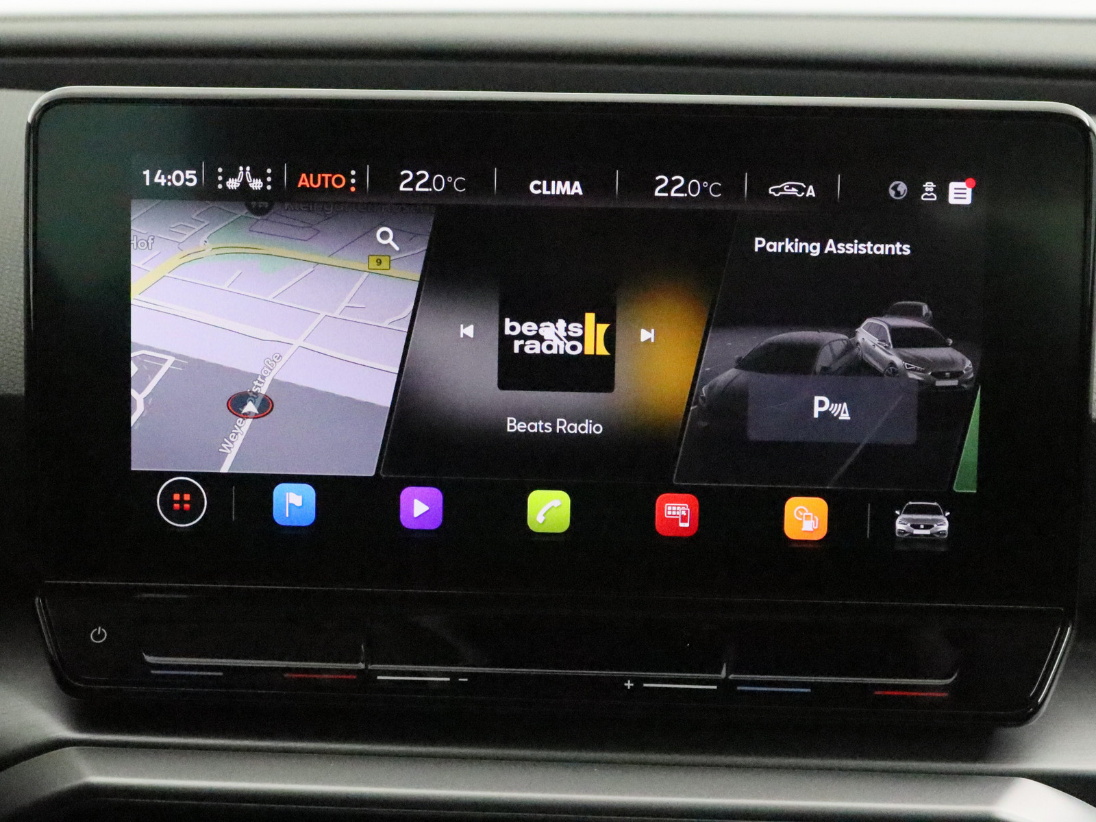 Einstiegsleisten beleuchtet Außenspiegel elektr. verstell-, heiz- und anklappbar mit Spiegelabsenkung Außenspiegel grau Dachreling Blinkleuchten LED in Außenspiegel integriert Nebelscheinwerfer LED mit Abbiegelicht Heckleuchten Voll-LED mit dynamischem Lichtband (Infinite Light) Tagfahrlicht LED Schwellerverbreiterung Stoßfänger FR-Design Wärmeschutzverglasung Seitenscheiben hinten und Heckscheibe abgedunkelt Radioempfang digital (DAB+) 6 Lautsprecher Notrufsystem USB-Schnittstelle vorn (2-fach, Typ C) Bluetooth-Schnittstelle mit Freisprecheinrichtung integriert Mobile Online Dienste Seat Connect Kombiinstrument digital (virtual cockpit) Bordcomputer Einparkhilfe hinten Reifenkontroll-Anzeige Pedale Aluminium-Design Airbag Fahrer-/Beifahrerseite Seitenairbag vorn mitte (Central Airbag) Kopf-Airbag-System Seitenairbag Airbag Beifahrerseite abschaltbar Gepäckraumabdeckung / Rollo Laderaumboden variabel und herausnehmbar Sitz vorn links höhenverstellbar Klimaanlage Climatronic 3-Zonen