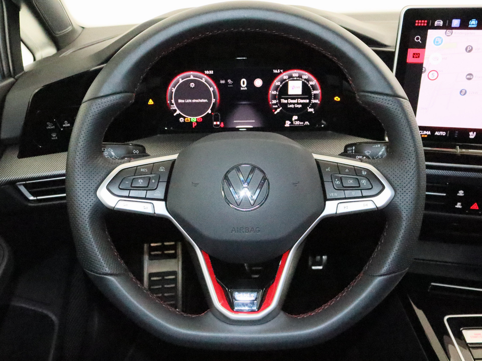 Serienausstattung: Modellpflege Ausstattung GTI Nichtraucher-Paket Fußgänger-Schutzmaßnahmen erweitert Außenspiegel elektr. verstell-, heiz- und anklappbar mit Spiegelabsenkung rechts, Memory Außenspiegel mit Umfeldleuchte und Projektionsfunktion Scheinwerfer LED Plus VW Logo vorn, Leiste zwischen Scheinwerfer und Türgriffmulden außen beleuchtet Leuchtweitenregelung automatisch Automatische Fahrlichtschaltung mit Leaving Home / Coming-Home-Lichtfunktion, Tagfahrlicht LED Abbiege- und Allwetterlicht / Schlechtwetter-Licht Fahrassistenz-System: Verkehrszeichenerkennung Heckleuchten LED Frontscheibe Verbundglas, wärme- und geräuschdämmend Radioempfang digital (DAB+) Lautsprecher (6+1) Mobiltelefon Schnittstelle mit kabelloser Ladefunktion Notrufsystem Multimedia-Schnittstelle 2 x USB (Typ C) vorn und 2 x USB-Ladeanschluß (Typ C) Mittelkonsole hinten (45 W) Mobile Online Dienste Vorbereitung We Connect und We Connect Plus App-Connect Wireless (Apple CarPlay, Android Auto) Chromeinfassung Fensterheberschalter / Spiegelverstellung / Ausströmer Digital Cockpit PRO (Instrumentenanzeige digital) Infotainment-System mit Touchscreen-Farbdisplay 12,9 Zoll Einparkhilfe vorn und hinten Reifenkontroll-Anzeige Innenausstattung: Dekoreinlagen Mesh Pedale Edelstahl Seitenairbag vorn mit Center-Airbag, Kopf-Airbag-Einheit vorn und hinten Fahrassistenz-System: Automatische Distanzregelung (ACC) Geschwindigkeitsbegrenzer mit vorausschauender Geschw.-Regelung Airbag Fahrer-/Beifahrerseite, Beifahrerairbag abschaltbar Mittelarmlehne vorn höhen-/längsverstellbar Klimaanlage Air Care Climatronic 3-Zonen inkl. Fondbedienung und Aktiv-Kombi-Filter Sitzbezug / Polsterung: Mikrovlies ArtVelours GTI Sitze: Top-Sportsitze vorn Rücksitzlehne geteilt mit Mittelarmlehne Zentralverriegelung Keyless-Start ohne Safesicherung Warnanlage für Sicherheitsgurte vorn und hinten Sicherheitsgurte hinten außen mit Gurtstraffer Ambiente-Beleuchtung (30 Farben) Fußraumbeleuchtung vorn LED (Farbe einstellbar) Leseleuchten vorn und hinten LED Sonnenblenden mit Spiegel (beleuchtet) Wegfahrsperre (elektronisch) Vorbereitung für Alkohol-Wegfahrsperre (Alcolock) Steckdose 12V im Koffer-/Laderaum Fußmatten Textil Isofix-Aufnahmen für Kindersitz an Beifahrersitz und Rücksitze außen (inkl. i-Size-Kindersitze) Schalt-/Wählhebelgriff Aluminium Verbandkasten, Warndreieck und Warnweste(n) Bordwerkzeug Rückfahrkamera (Rear View) Anti-Blockier-System (ABS) Parkbremse elektrisch mit Auto-Hold-Funktion Fahrassistenz-System: Abbiegebremsfunktion und Ausweichunterstützung Fahrassistenz-System: Umfeldbeobachtungssystem (Front assist) mit City-Notbremsfunktion Sport-Fahrwerk Fahrassistenz-System: Spurhalteassistent (Lane Assist) Fahrassistenz-System: Ablenkungs- und Müdigkeitserkennung LM-Felgen 7,5x18 (Richmond, schwarz glanzgedreht) Diebstahlsicherung für Räder (Felgenschlösser) Reifen-Reparaturkit (Tire Mobility Set) Progressivlenkung Differentialsperre (Vorderachse) Hersteller: Volkswagen AG Berliner Ring 2 38440 Wolfsburg Deutschland kundenbetreuung@volkswagen.de Zwischenverkauf und Irrtümer vorbehalten. Die Fahrzeugbeschreibung dient ausschließlich der allgemeinen Identifikation des Fahrzeugs und stellt keine rechtsverbindliche Gewährleistung dar. Verbindlich sind nur die Vereinbarungen im Kaufvertrag und der Auftragsbestätigung. Bitte beachten Sie, dass bestimmte Sonderausstattungen zusätzliche Kosten verursachen können. Detaillierte Informationen zum Ausstattungsumfang erhalten Sie von unserem Verkaufspersonal.